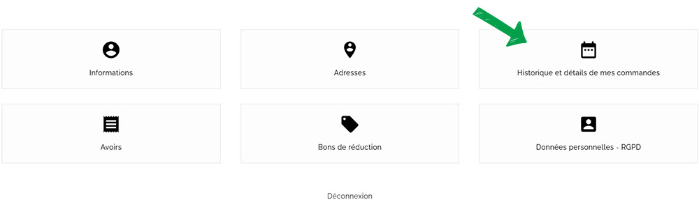 1. Pour cela, il faut aller sur « mon compte » et cliquer sur « historique et détails de mes commandes »