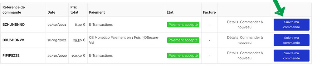 2. Vous trouverez ici vos commandes passées depuis la création de votre compte.